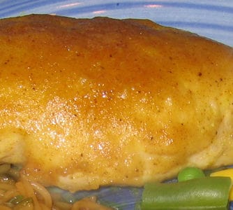 A sweet curry flavour is on this chicken breast as it bakes making a healthy, low fat meal.