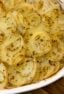 - Repeat previous step two more times to lay all the sliced potatoes and onion in the baking dish.