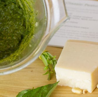 I recently received a Blendtec Designer Series Blender and I am absolutely loving it, trying everything from smoothies, to peanut butter, soup and now pesto. Fresh pesto is awesome and it is crazy easy to make in a blender. Use only the freshest ingredients and it will turn out wonderful. We use pesto in many different dishes: