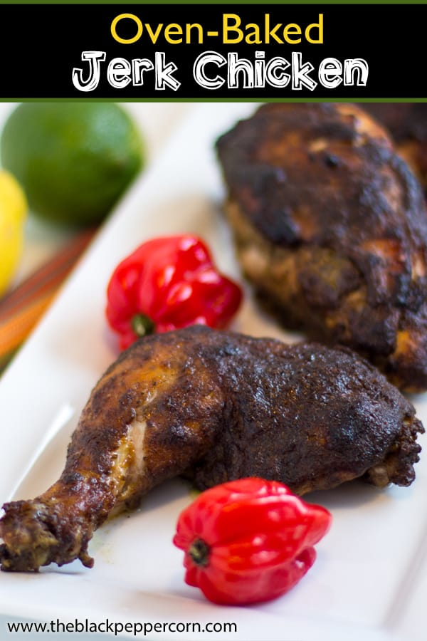 Oven baked chicken with this jerk marinade is pretty much as tasty as when it is grilled. The chicken is moist and tender and jerk marinade crisps up and creates a nice coating on the chicken.